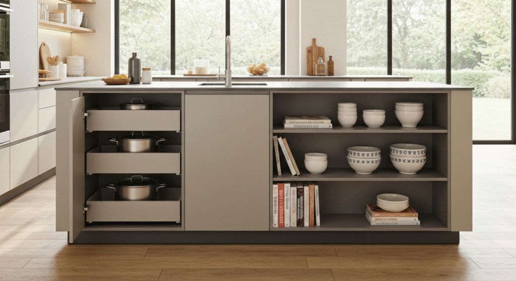 The fundamental principle behind modular island storage is adaptation. A traditional kitchen is designed with a general set of assumptions about how you’ll use it. A modular kitchen assumes nothing. It understands that you might be an avid baker in December, a home canner in August, and a casual weekday cook the rest of the year.