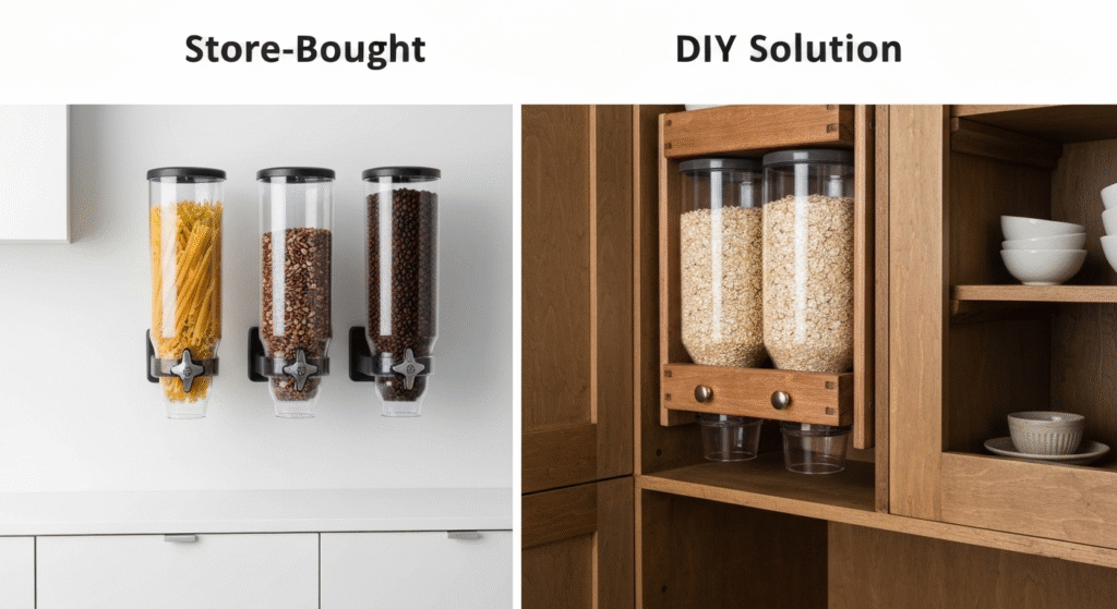 Before you buy or build anything, measure your shelves. Note the height, width, and depth you have available. Think about what you buy in bulk most often. How many dispensers do you need? Will they sit on a shelf, hang on a wall, or be built into a cabinet? Planning this out first prevents headaches later.
